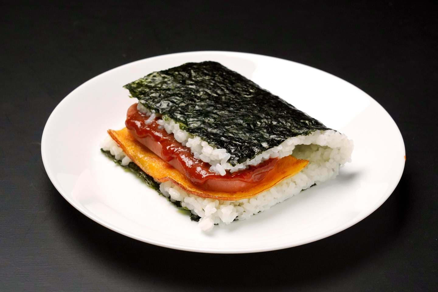 ポーむす沖縄名物のポークたまごおむすび!沖縄一番人気のチューリップ社のジューシーなランチョンミートを使用したオムサンド |